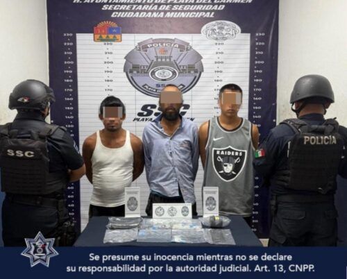 Playa del Carmen.- Policías municipales de Playa del Carmen capturaron a tres narcomenudistas con un total de 80 envoltorios con posibles narcóticos, en la colonia irregular In House, lo que representa posibles delitos contra la salud.