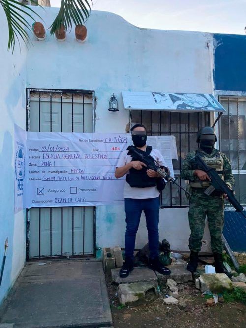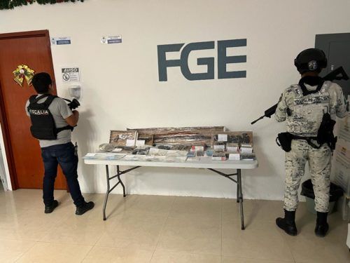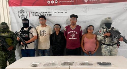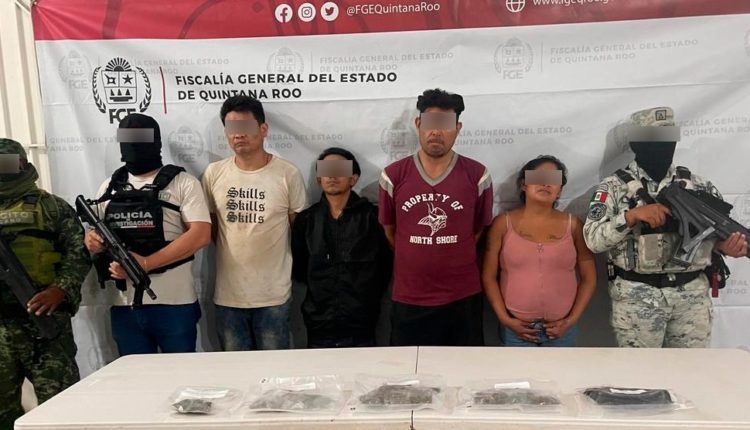 Cancún.- Cinco personas detenidas, cuatro hombres y una mujer, así como diversas dosis de presunta droga, armas de fuego y cartuchos útiles, fueron el saldo de tres cateos cumplimentados por personal de la Fiscalía General del Estado, en colaboración con elementos de la Guardia Nacional, en tres inmuebles ubicados, dos en el municipio de Benito Juárez y otro en Solidaridad.
