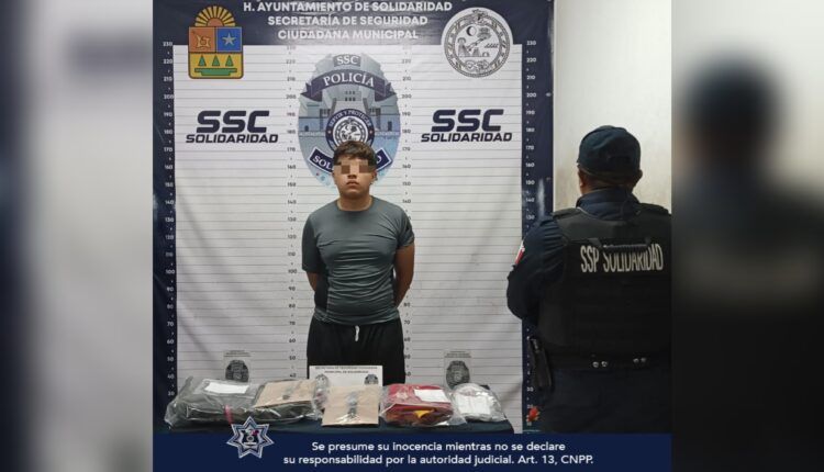Playa del Carmen. – Durante el operativo de búsqueda de una persona relacionada con diversos robos a comercio, la Policía Municipal de Solidaridad aseguró a un sujeto en el fraccionamiento Villas del Sol.