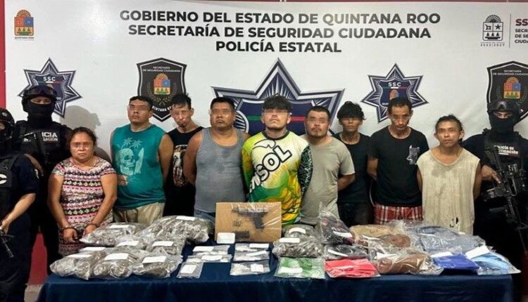 Cancún. – Agentes de la Secretaría de Seguridad Ciudadana detuvieron a nueve personas, presuntas implicadas en delitos Contra la Salud y por la Violación a la Ley Federal de Arma de Fuego y Explosivos.