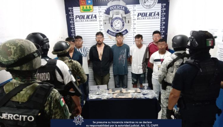 Los hechos ocurrieron la noche del 23 de julio, y mientras se realizaba un operativo de vigilancia, los oficiales que transitaban sobre la Quinta Avenida entre calles 4 y 6 escucharon lo que parecían ser detonaciones de arma, al trasladarse al lugar entre las calles 8 y 10, fue identificado un grupo de sujetos como los presuntos responsables, quienes emprendieron la huida, por lo que de manera inmediata los policías implementaron un operativo para darles alcance.Tras realizarles una inspección de seguridad, Omar “N” de 38 años de edad, originario de Tamaulipas, Mario “N” de 18 años, originario de Quintana Roo, Braulio “N” de 21 años de edad, originario de Guanajuato, José “N” de 27 años, originario de Tabasco, Kevin “N” de 22 años de edad, Julio “N” de 18 años de edad y Alexis “N” de 29 años de edad, estos tres últimos originarios de Chiapas, tenían en su posesión 31 bolsitas con un vegetal verde similar a droga conocida como marihuana, y 3 de ellos, (Omar, Julio y Alexis) 3 armas de fuego, una tipo revólver y 2 tipo escuadra, respectivamente.