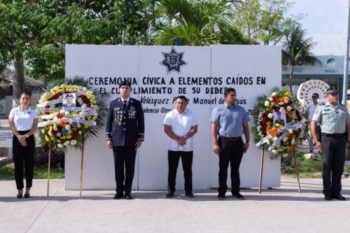 Durante el acto, los agentes de la dirección general de Seguridad y Protección Ciudadana de Tulum, encabezados por el comisionado Mtro. y P.A. Oscar Alberto Aparicio Avendaño, así como regidores, funcionarios y representantes de la Guardia Nacional, Marina, el Ejército Mexicano y la Policía Estatal, rememoraron a sus compañeros y dieron el pésame a las familias de las víctimas.
