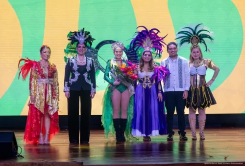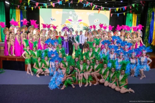El concurso de comparsas aportó color y dinamismo al evento, con presentaciones en ritmos de rumba, samba y mambo que hicieron vibrar el salón.