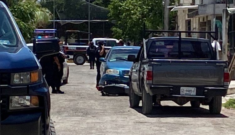 De acuerdo con reportes preliminares, sicarios a bordo de dicha moto interceptaron y dispararon en contra del conductor del automóvil azul, quien reaccionó rápido, pisó el acelerador y atropelló a sus agresores que posteriormente huyeron a pie, adentrándose a la zona de invasión.
