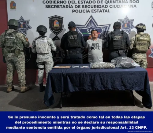 Seis personas fueron detenidas en distintos operativos interinstitucionales realizados en los municipios de Othón P. Blanco y Benito Juárez, por su presunta participación en delitos de desobediencia y resistencia de particulares, delitos contra la salud y violación a la Ley Federal de Armas de Fuego y Explosivos.