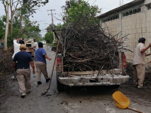Laura Fernández comentó que este día las cuadrillas, encabezadas por Jhony Castañeda Sánchez, Samuel Fernández, Álvaro Canul Cahuich y el delegado José Alberto Cahuich Ramírez, atendieron la calle Felipe Carillo Puerto con el retiro de material vegetal que dejaron los fenómenos meteorológicos.