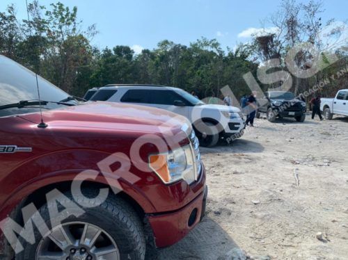 Cancún,Quintana Roo,21 de marzo de 2021.- El reporte de gente armada en la zona de invasión, donde se ubica el antiguo relleno sanitario, movilizó al menos medio centenar de policías y permitió el aseguramiento de dos camionetas con sospecha de reporte de robo.