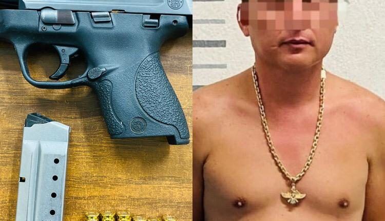 Al realizarle una inspección de seguridad, los policías encontraron entre sus pertenencias el arma de fuego, por lo que tras la lectura de sus derechos, fue asegurado y puesto a disposición de la Fiscalía General de la República, por la posible comisión del delito de violacion a la Ley Federal de Armas