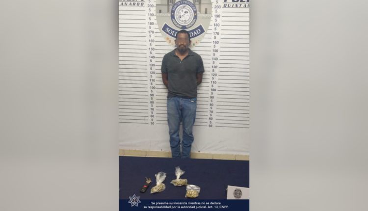 Playa del Carmen.- Una persona fue asegurada por policías de la Secretaría de Seguridad Pública y Tránsito Municipal de Solidaridad en posesión de posible marihuana en la colonia Ejido, durante un operativo de vigilancia.