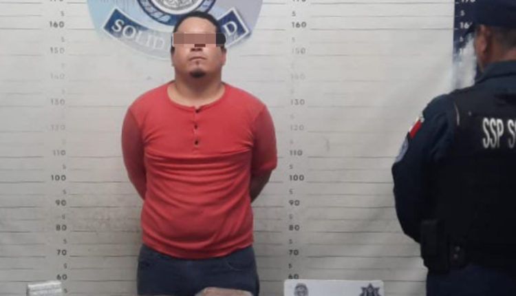 En el fraccionamiento Villas del Sol con avenidas Periférico y CTM, fue asegurado César “N” de 24 años de edad, originario de Tabasco, quien tenía en su posesión un arma de fuego con cargador y 7 cartuchos, 25 bolsas con posible marihuana, 8 con una sustancia similar a la metanfetamina, 3 con lo que parece ser cocaína y 2 teléfonos celulares. Esto después de que los policías preventivos lo descubrieran en flagrancia guardando las posibles drogas en una cangurera.