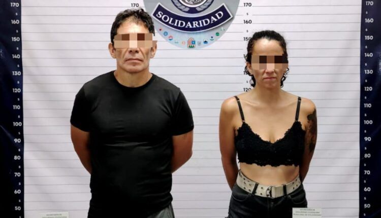 Playa del Carmen.- Policías Municipales de Solidaridad aseguraron a un hombre y una mujer en posesión de posible marihuana en el fraccionamiento Villas del Sol.