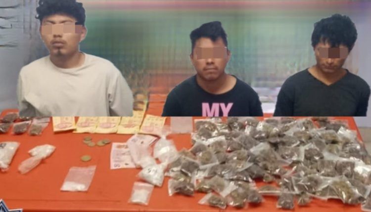 La mañana de este viernes 18 de febrero, mientras los oficiales realizaban recorridos de vigilancia, sorprendieron en una calle de terracería a tres sujetos que intercambiaban dinero en efectivo y bolsitas que contenían vegetal verde y seco similar a la marihuana.