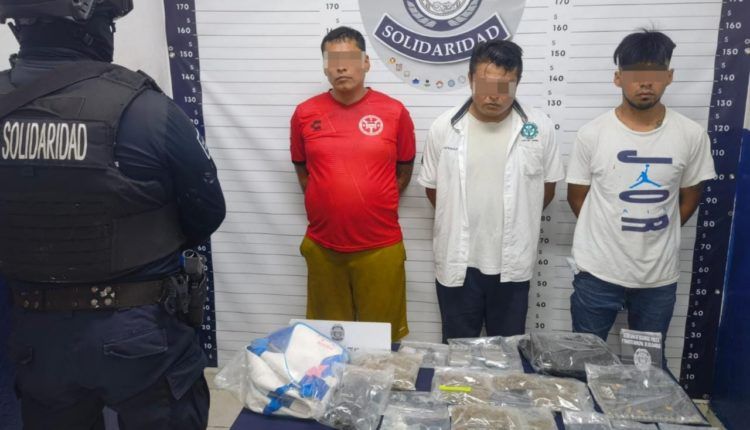 Playa del Carmen.- Tres personas fueron aseguradas por policías de la Secretaría de Seguridad Pública y Tránsito Municipal de Solidaridad en posesión de 47 envoltorios con posibles narcóticos, asimismo se aseguraron dos vehículos habilitados como taxi donde los sujetos pretendían huir, durante el operativo permanente de vigilancia en el fraccionamiento Villas del Sol.