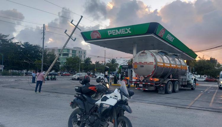 Benito Juárez, Quintana Roo. – Un camión cisterna que trasladaba gasolina derribó un poste de la Comisión Federal de Electricidad (CFE) en la gasolinera ubicada en la avenida Bonampak de Cancún, a un costado del Superama en la Supermanzana 3.