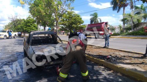 Consumida en su totalidad por las llamas acabo una camioneta particular en la zona hotelera de Cancún.