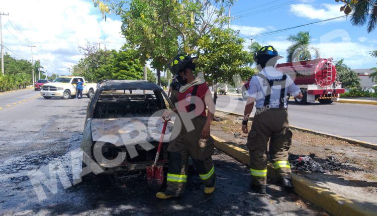 Consumida en su totalidad por las llamas acabo una camioneta particular en la zona hotelera de Cancún.