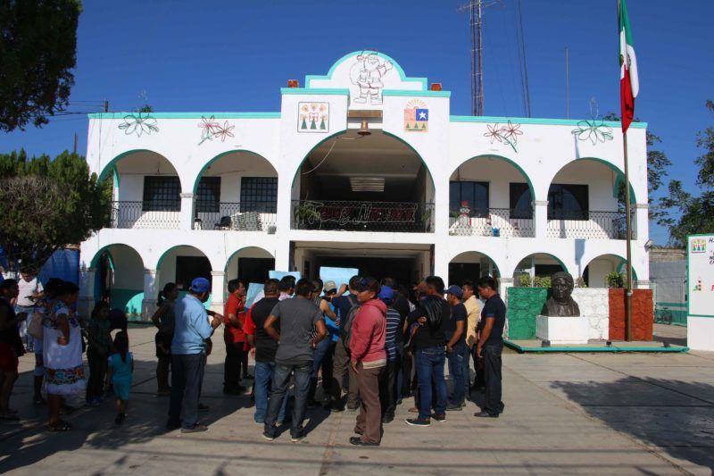 José María Morelos, Q. Roo, 20 diciembre 2018.- Campesinos de la comunidad de X-Cruz se manifestaron en los bajos del Palacio Municipal exigiendo a sus autoridades anular las elecciones en su comunidad y una nueva ronda electoral mediante votaciones y no por imposición.