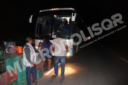 Felipe Carrillo Puerto, Quintana Roo, 18 de febrero 2021.- Un grupo de campesinos de la comunidad de Cuchumatan se vieron afectados cuando el autobús en el que iban y transportaban sus productos que venderían en la ciudad de Cancún, colisionó contra un automóvil particular en tramo federal a unos 11 kilómetros al norte de la ciudad; por fortuna no hubieron personas lesionadas sino solo daños materiales superiores a los 80 mil pesos.