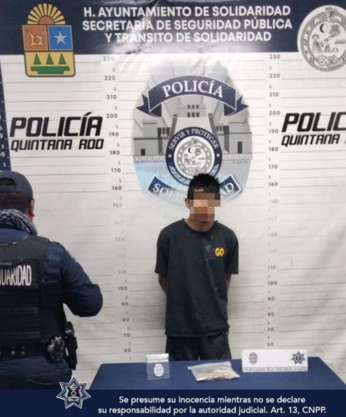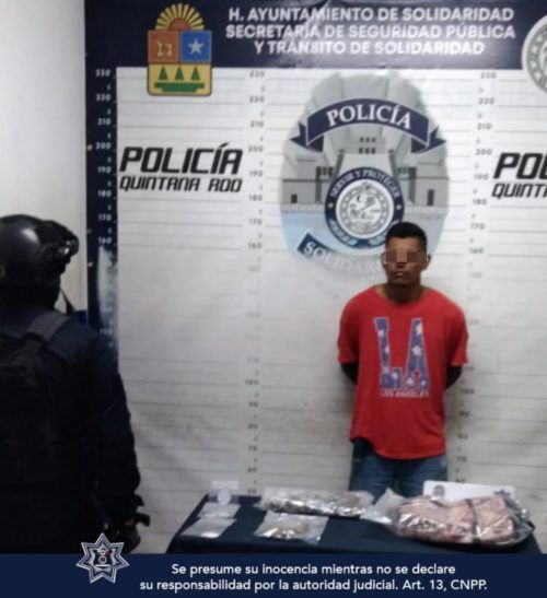 Playa del Carmen.- En el marco del operativo de vigilancia y prevención de delitos, la Policía Municipal de Solidaridad detuvo a 9 sujetos en 6 hechos distintos, a quienes les fueron asegurados diversos narcóticos como marihuana, cocaína y metanfetamina.