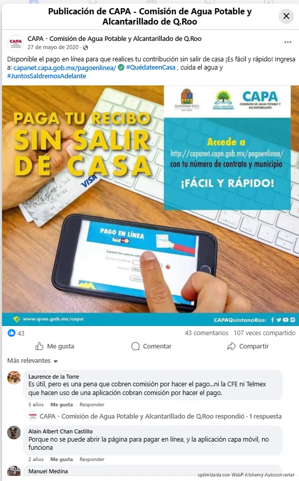 Bacalar, Quintana Roo.— La indignación ciudadana contra la Comisión de Agua Potable y Alcantarillado (CAPA) se ha intensificado tras la difusión de recibos con cobros desproporcionados, que en varios casos superan los montos que pagan grandes hoteles en la misma zona. Usuarios califican las tarifas como arbitrarias e injustificadas, señalando que se castiga a las viviendas particulares mientras se toleran esquemas preferenciales para el sector turístico.