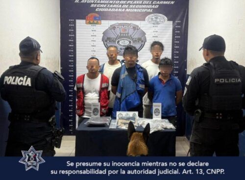 Playa del Carmen.- La Secretaría de Seguridad Ciudadana de Playa del Carmen aseguró a cinco personas por la probable comisión de delitos contra la salud y violación a la Ley Federal de Armas de Fuego en el fraccionamiento Pescadores 2.