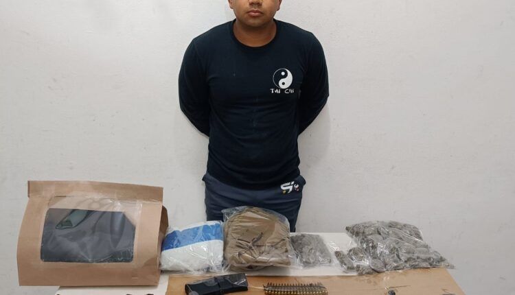 Tulum.- La Fiscalía General del Estado, a través de elementos de la Policía de Investigación, detuvo en flagrancia a una persona del sexo masculino, por su presunta relación en hechos que podrían ser constitutivos de delitos contra la salud en su modalidad de narcomenudeo y violación a la Ley Federal de Armas de Fuego y Explosivos, en el poblado Macario Gómez de este municipio.
