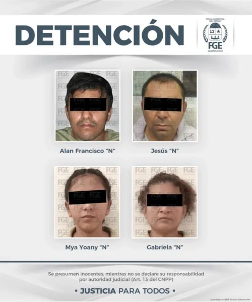 De acuerdo con la autoridad ministerial, los nuevos detenidos son Alan Francisco “N” y Jesús “N”, quienes fueron aprehendidos en acciones distintas derivadas de trabajos de investigación de campo y gabinete. Alan Francisco “N” fue capturado en colaboración con la Fiscalía General del Estado de Yucatán, mientras que Jesús “N” fue detenido en el municipio de Playa del Carmen.