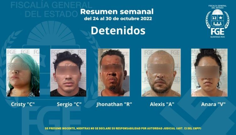 Cancún.- Durante la semana del 24 al 30 de octubre ingresaron a la Fiscalía General del Estado 117 personas, de las que 102 fueron en flagrancia y 15 en cumplimiento de órdenes de aprehensión.