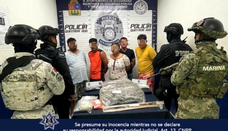 Tras marcarles el alto, uno de los sujetos tomó un machete y amenazó a los oficiales pero fue asegurado. Tras una inspección de seguridad a las bolsas, los policías encontraron 5 paquetes que contenían un vegetal con las características de la marihuana, 1 envoltorio con una sustancia similar al cristal, un envoltorio con varias bolsitas dentro y un machete, por lo que los ahora detenidos: Baltazar “N” de 29 años de edad, proveniente de Chetumal, Miguel “N” de 37 años, oriundo de Oaxaca, Eduardo “N” de 35 años de edad, originario de Cozumel, Manuel “N” de 23 años de edad, oriundo de esta entidad y Frida “N” de 21 años de edad, originaria de la Ciudad de México, fueron asegurados.