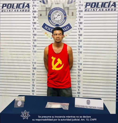 Playa del Carmen.- Un sujeto fue asegurado en posesión de posibles narcóticos por policías de la Secretaría de Seguridad Pública y Tránsito Municipal de Solidaridad como resultado del operativo permanente de vigilancia en la colonia Colosio.