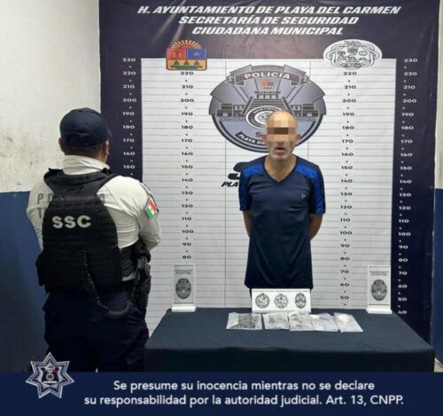 Playa del Carmen.- La Secretaría de Seguridad Ciudadana de Playa del Carmen aseguró a una persona por presuntos delitos contra la salud, con un total de 29 envoltorios de posibles narcóticos, en la colonia Centro.