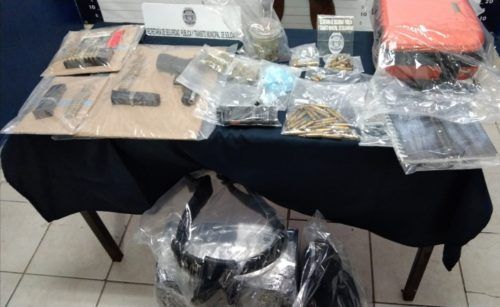 Playa del Carmen.- Policías municipales de Solidaridad aseguraron a un sujeto en posesión de un arma de fuego, 109 cartuchos útiles y 32 envoltorios con posibles narcóticos en el fraccionamiento Real Bilbao.