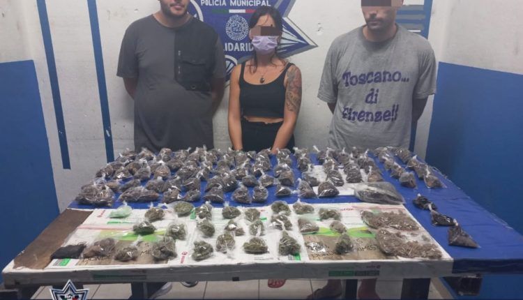 Los dos hombres y una mujer pretendían huir de la policía con 125 dosis de drogas en el centro de Playa del Carmen