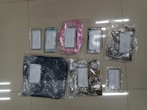 Se les decomisaron: 43 bolsitas de plástico transparentes tipo ziploc con hierba verde y seca con las características similares a la marihuana, una bolsita de plástico transparente tipo ziploc con polvo blanco con las características similares a la cocaína y una bolsita de plástico transparente tipo ziploc con fragmentos cristalinos con las características similares al cristal.