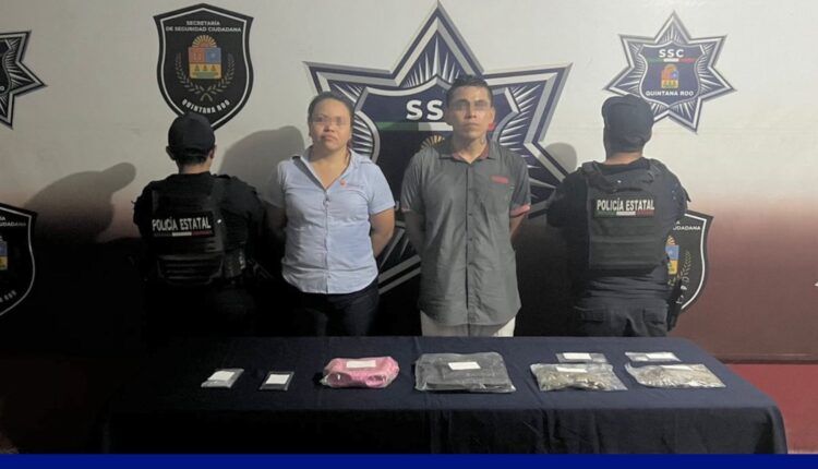 Cancún.- En recorridos de vigilancia, elementos de la Secretaría de Seguridad Ciudadana, se percataron de dos personas, delante de ellos un vehículo estacionado con las intermitentes encendidas. Ambos estaban intercambiando múltiples bolsitas de plástico transparentes que en su interior contenían hierba verde y seca con las características a la marihuana.