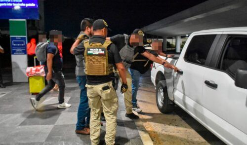 Posteriormente, al verificar su identidad en la base de datos de Plataforma México, se confirmó que contaba con una orden de aprehensión vigente por su probable participación en el homicidio de tres taxistas, localizados sin vida con impactos de arma de fuego, el 18 de julio, en el municipio de Playa del Carmen, Quintana Roo.