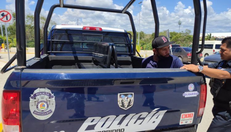 El hecho ocurrió alrededor de las 4:00 de la tarde, cuando los oficiales recibieron el reporte de que en la Carretera Federal 307 con avenida Calzada Puerto Maya en el estacionamiento de la plaza, el chofer de una camioneta dedicada a transportar turistas, señaló a dos personas que habían sacado las pertenencias de un grupo que transportaba a un cenote.