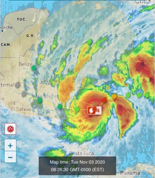 A través de sus redes sociales, el gobernador de Quintana Roo fue dando a conocer la evolución de la zona de baja presión, luego de la depresión tropical 29 en Nicaragua y posteriormente de la tormenta tropical “Eta”, más adelante convertida en huracán categoría uno y después, hasta este lunes a las cinco de la tarde, en huracán categoría cuatro antes de tocar tierra en la frontera entre Nicaragua y Honduras.