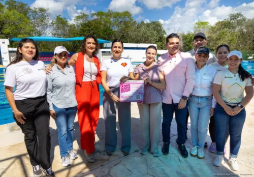 Playa del Carmen, Quintana Roo, 7 de abril de 2026.— La presidenta municipal Estefanía Mercado anunció la puesta en marcha del programa “Carril Rosa” en la alberca olímpica de la Unidad Deportiva Riviera Maya, una iniciativa enfocada en brindar atención especializada a mujeres que padecen linfedema.