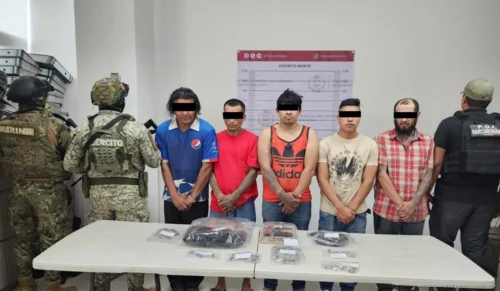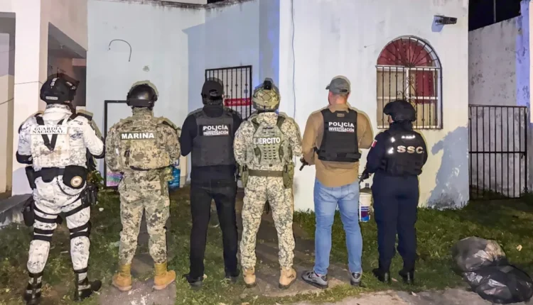 Cancún, Quintana Roo.– Un operativo coordinado entre fuerzas federales y estatales dejó como saldo cinco hombres detenidos, droga asegurada, un arma de fuego y varios inmuebles bajo resguardo oficial, tras la ejecución de cinco órdenes de cateo en los municipios de Benito Juárez, Playa del Carmen y Cozumel.