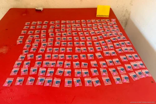 En el municipio de Tulum, en un domicilio ubicado en la calle Chikil, los agentes aseguraron hierba verde seca con características similares a la marihuana, pastillas de color rosa relacionadas con la droga conocida como LSD, así como dos armas de fuego y básculas grameras.