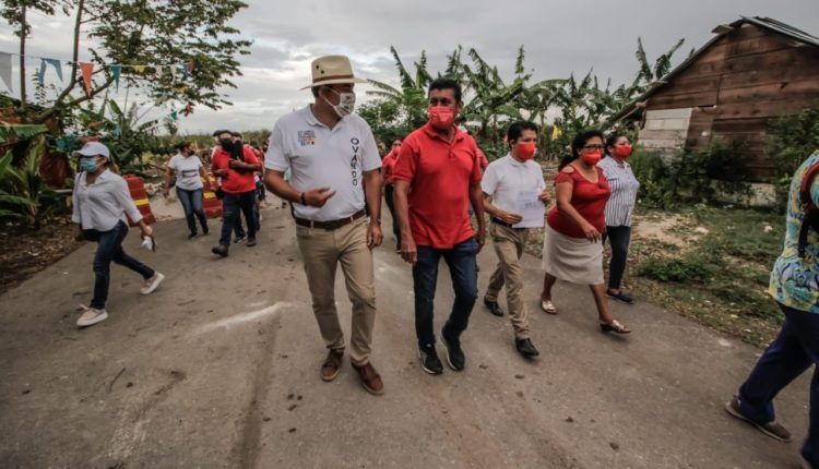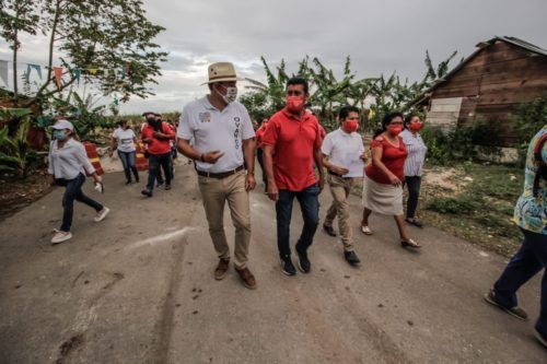Bacalar, Quintana Roo, 8 de mayo de 2021.El candidato de la coalición “Va por Quintana Roo”, José Alfredo Chepe Conteras, visitó la comunidad El Gallito y una de las colonias más vulnerables de Bacalar, La Antorchistas, donde afirmó :