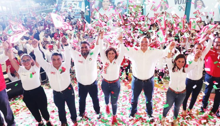 *La candidata del PRI al gobierno quintanarroense cierra campaña en la capital del estado, rodeada de importantes figuras de su partido y arropada por militantes y simpatizantes