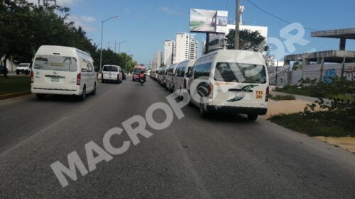 Cancun, Quintana Roo, 1 de enero 2021 .- Protestan choferes del servicio colectivo de combis de diferentes empresas, en la avenida Tulum y la avenida Francisco I. Madero (R-5), a la altura de la Región 75, cerca de la Cuchilla.