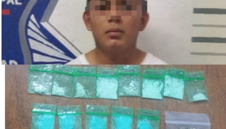 Los policías turísticos que realizaban rondines de vigilancia para la disuasión de delitos, atendieron el auxilio de un ciudadano que les indicó que un sujeto en estado inconveniente atacaba a los clientes del establecimiento, al llegar al lugar, se entrevistaron con el ahora detenido y al realizarle una inspección de seguridad encontraron entre sus pertenencias 5 bolsas con una sustancia sólida de las características de la droga conocida como cristal, 8 bolsas con polvo blanco al parecer cocaína y una bolsa con vegetal verde similar a la marihuana.