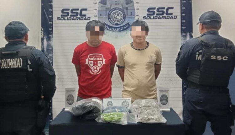 Playa del Carmen.– Policías municipales detuvieron a dos personas en posesión de un paquete y 109 dosis de posibles narcóticos en la colonia irregular In House.