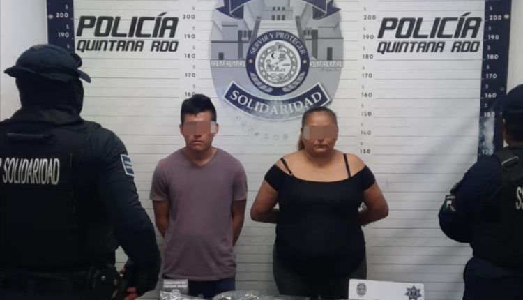Playa del Carmen.- Policías municipal de Solidaridad aseguraron a una mujer, 1 hombre, 1 arma de fuego y más de 80 envoltorios con posibles narcóticos en el fraccionamiento Puerto Maya.