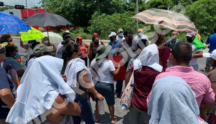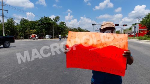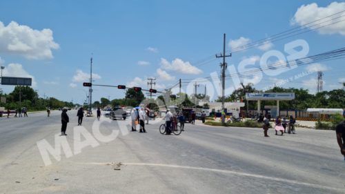 Cancun, a 24 de junio de 2021.-Un aglomerado de unos 50 vecinos de la colonia Avante decidieron bloquear los dos sentidos de la avenida José López Portillo para que de una vez por todas las hagan caso y les instalen el servicio se energía eléctrica, por el cual llevan varios meses luchando y solo los traen dando vueltas.