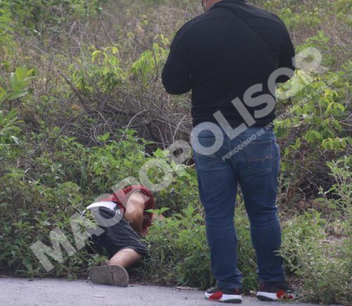 El cuerpo del joven quedó sobre la maleza, vestía una playera roja con blanco, una Bermuda negra y sandalias, en el brazo izquierdo al menos tiene cinco orificios de bala y en el derecho uno.