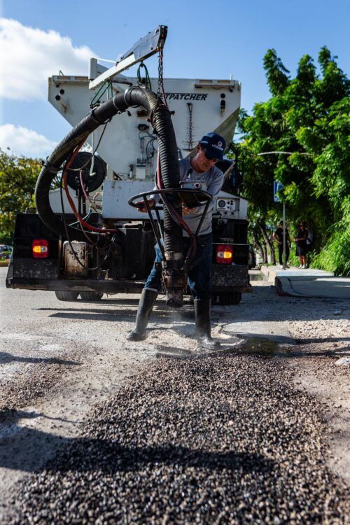 “Esperamos en esta fecha ponernos al día en los trabajos de bacheo, pero el programa es permanente y no vamos a parar hasta atender el problema”, agregó.